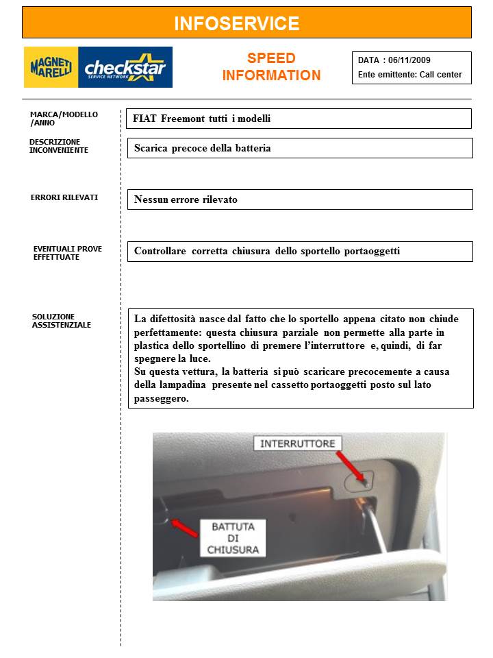 Nuova info assistenziale (95): Fiat Freemont – Tutti modelli – Scarica precoce batteria